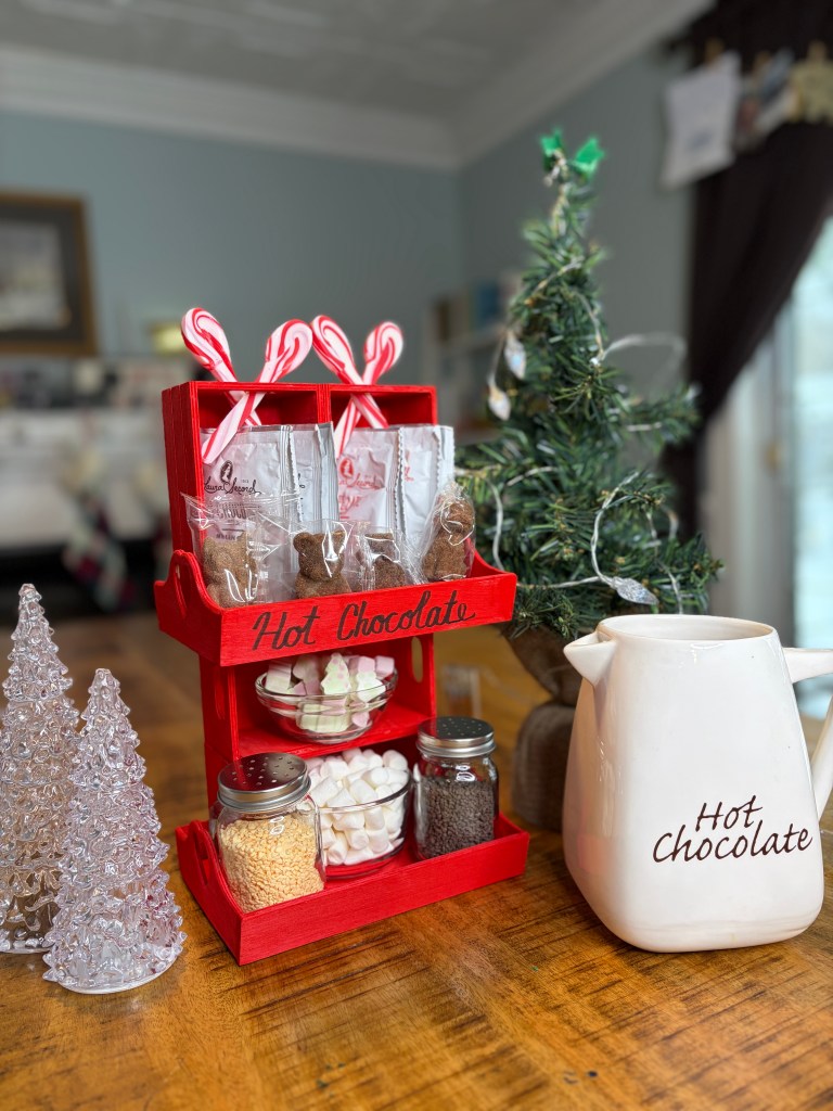 Whether you’re hosting a Christmas party, setting up a holiday movie night, or just want to make everyday cocoa-time feel a little more magical, this tiny “pantry-style” station checks all the boxes.